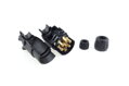 Zástrčka pre prípojné vozidlo, 7 pólov. Montáž zverte odbornej dielni, či autoservisu. Max. napätie: 12-24V. Vzhľadom k novým požiadavkám na viac druhov osvetlenia prívesov (hmlové svetlo, cúvacie svetlo, vnútorné osvetlenie niektorých druhov prívesov) sa najnovšie používajú 13 pólové zásuvky a zástrčky namiesto pôvodných 7 pólových. V zahraničí sa začal 13 pólový systém používať už pred niekoľkými rokmi. Často tak vznikajú situácie, kedy je treba prepojiť (redukcie) alebo upraviť závesné zariadenie auta (zásuvka) ,či prívesu (zástrčka) tak, aby bylo možné súpravu auto + vlek prepojiť el. káblom. 7 pólové zásuvky a zástrčky sa obvykle používajú u starších vozidiel a prívesov. 13 pólové zásuvky a zástrčky sa používajú u nových tažných zariadení a u nových prívesov.